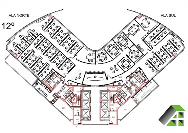 ar condicionado (VRF), green building (Leed Gold), piso elevado, forro suspenso, sprinkler, detector de fumaça, controle de acesso, CFTV, auditório para 80 pessoas, Transporte público: ônibus, metrô