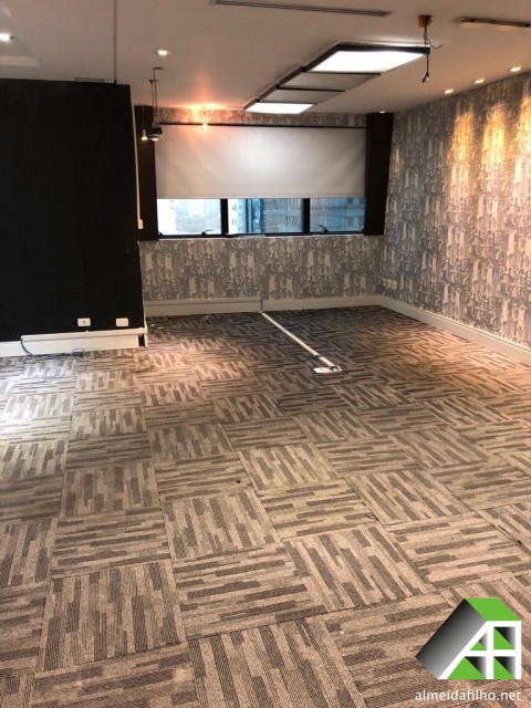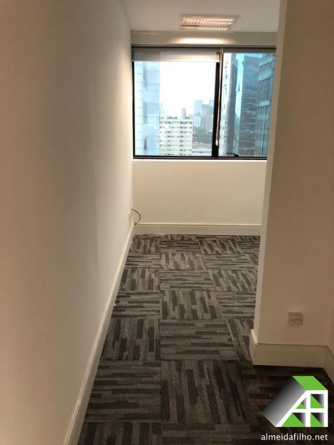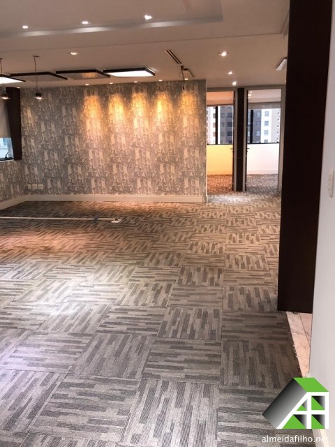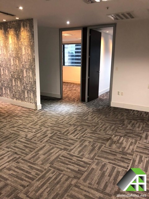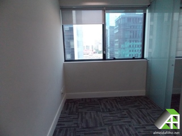 ar condicionado (Central), forro suspenso, sprinkler, controle de acesso, CFTV, sala de conferência, Transporte público: ônibus, trem