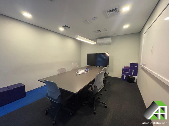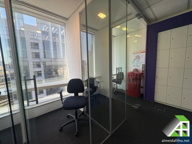 ar condicionado (Central), piso elevado, forro suspenso, sprinkler, detector de fumaça, controle de acesso, CFTV, BMS, central de segurança, auditório para 120 pessoas, Transporte público: ônibus, trem